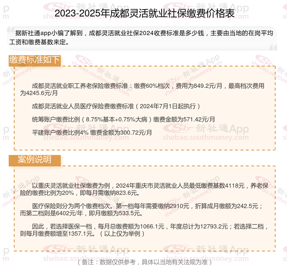 二、2024年成都灵活就业社保缴费标准,最新如下: