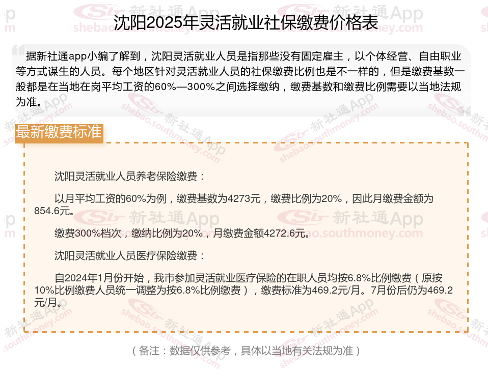 2025年沈阳灵活就业人员社保需要交多少钱?灵活就业,作为一种非传统的就业方式,近年来蓬勃发展。为保护这部分人群的权益,国制定了相应的社保缴费法规。2024年,灵活就业社保缴费法规继续完善,涵盖了养老保险、医疗保险、失业保险等多个方面,旨在为灵活就业人员提供全面的社会保证。接下来随新社通APP小编一起来看看。