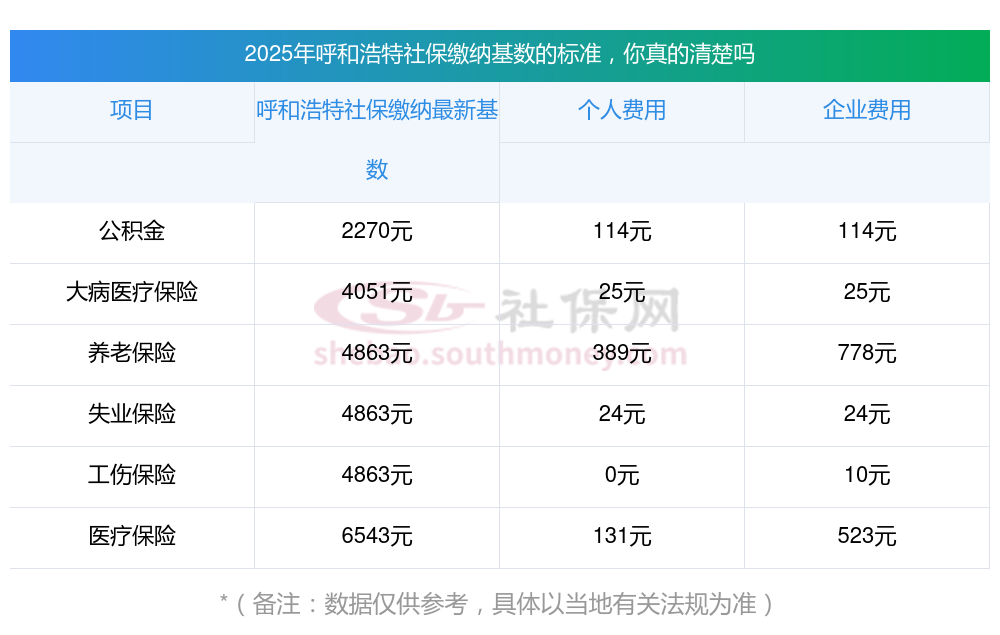 一、呼和浩特交社保一个月多少钱?2025年呼和浩特社保缴费比例、明细