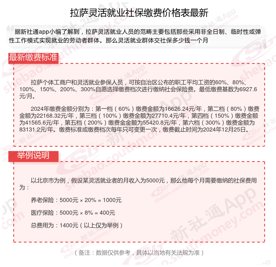 一、2024年拉萨灵活就业社保缴费标准表 拉萨灵活就业社保多少钱一个月?
