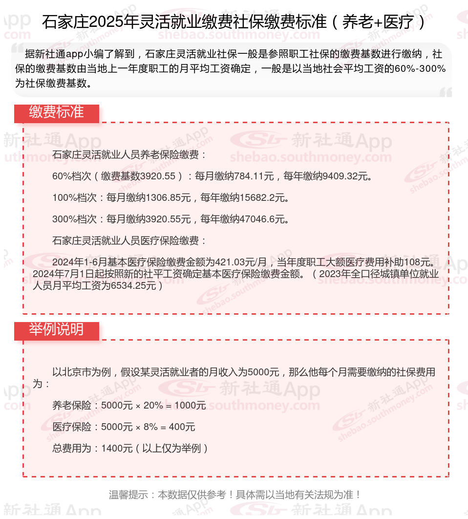 随着经济社会的不断发展,灵活就业群体日益壮大,其社保缴费问题也愈发受到关注。接下来随社保君了解一下2025年石家庄灵活就业人员社保交多少钱的详细内容。