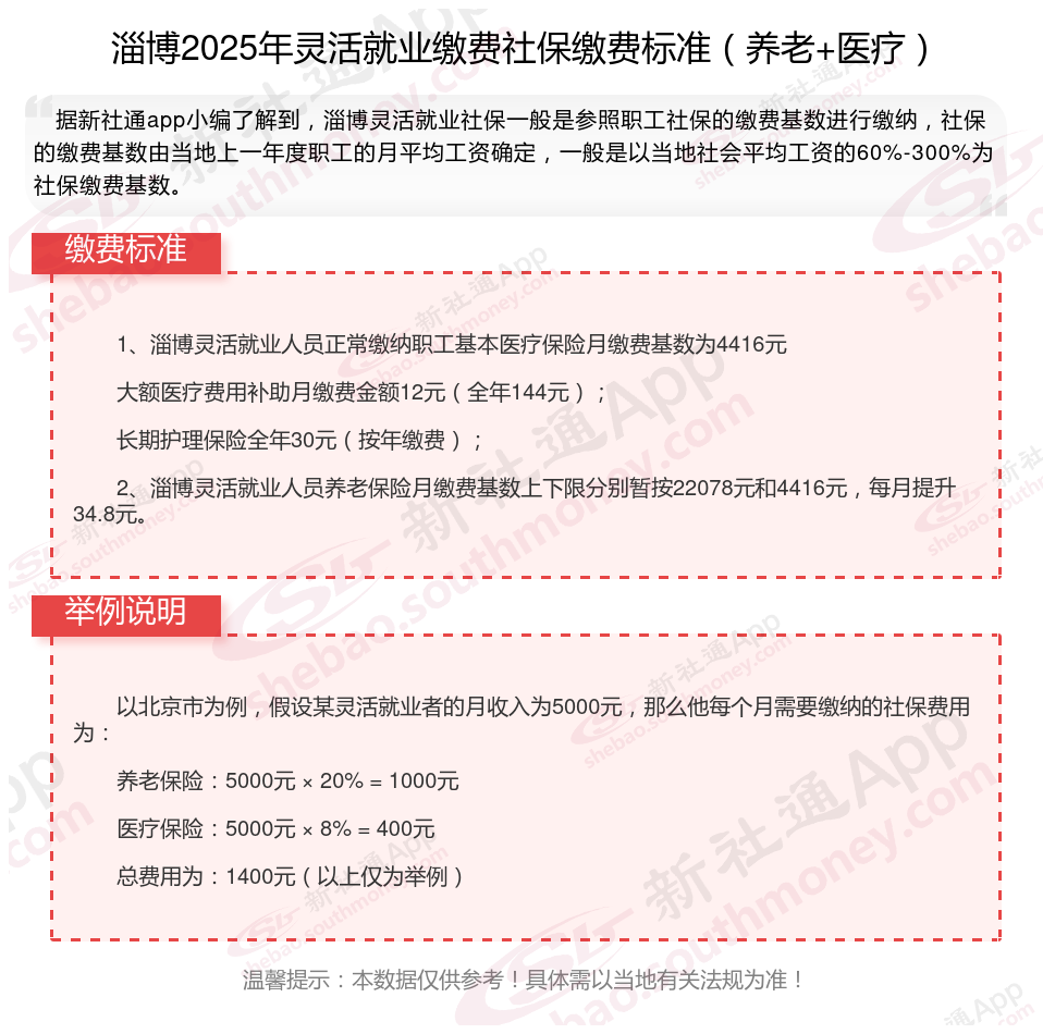 2025灵活就业社保缴费标准的调整,既体现了法规的连续性,又适应了经济社会发展的要求。灵活就业人员应根据自身情况,合理选择缴费基数和缴费比例,确保自身权益得到充分保证。那么2025年淄博灵活就业人员社保需要交多少钱?下面随新社通小编一起来看看。