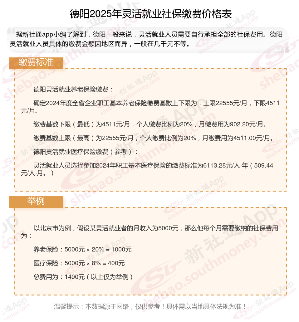 一、德阳灵活就业社保缴费基数及比例最新消息
