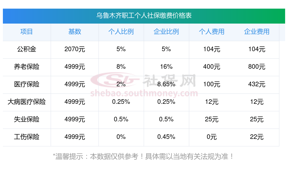 2025年以个人身份参加职工乌鲁木齐社保的缴费标准是多少?据新社通app获悉:乌鲁木齐企业职工社保缴费基数为:3579.00元。