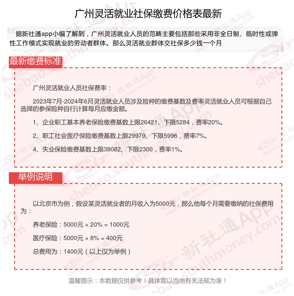 提示:广州灵活就业人员每个月的缴费压力还是比较大的,每个月的社保费用都是千元,缴费档次越高,灵活就业人员要缴纳的费用也越多。
