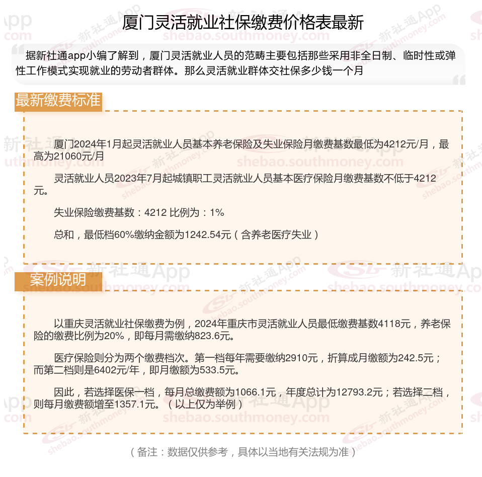 以上就是厦门灵活就业社保缴费的全部内容,数据及内容供参考!希望对你有帮助,欢迎关注新社通app解锁更多社保专业资讯。