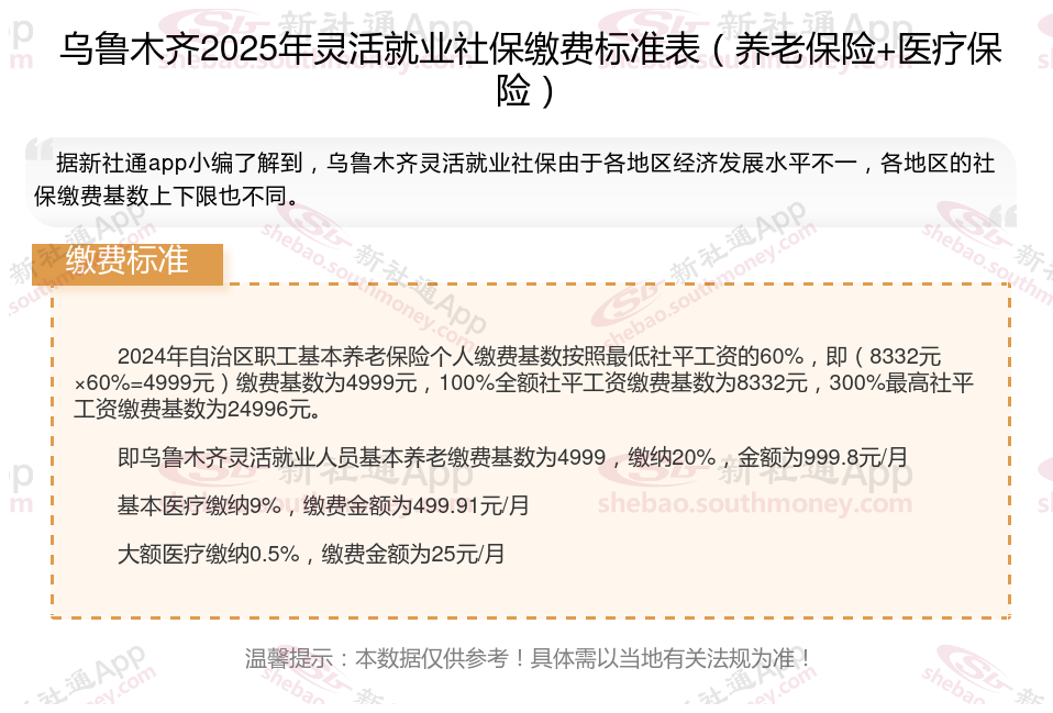 提示:乌鲁木齐灵活就业人员每个月的缴费压力还是比较大的,每个月的社保费用都是千元,缴费档次越高,灵活就业人员要缴纳的费用也越多。