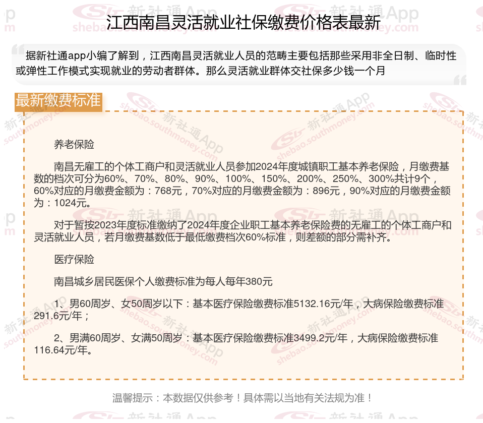 随着经济社会的不断发展,灵活就业群体日益壮大,其社保缴费问题也愈发受到关注。那么2025年江西南昌灵活就业人员社保需要交多少钱,缴费比例是多少?下面随新社通小编一起来看看。