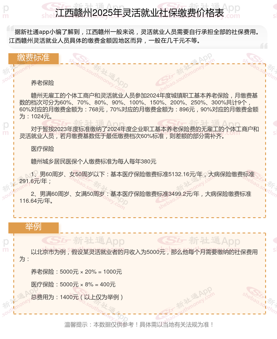 提示:江西赣州灵活就业人员每个月的缴费压力还是比较大的,每个月的社保费用都是千元,缴费档次越高,灵活就业人员要缴纳的费用也越多。