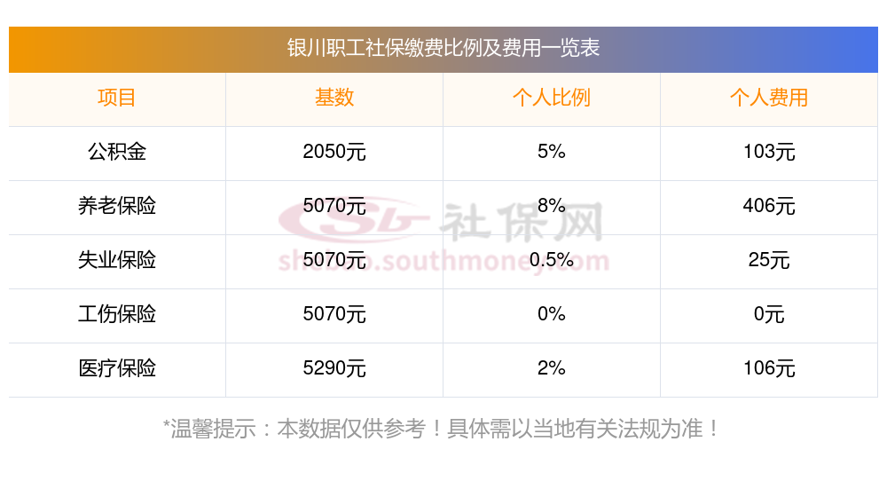 2025年银川社保费用明细表,个人要交多少钱?