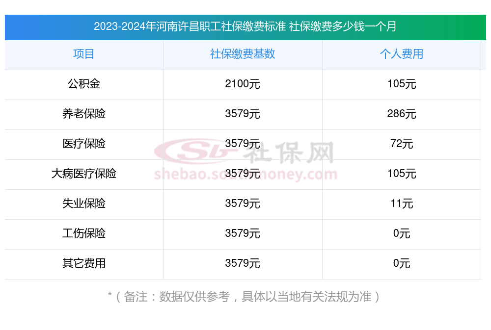 据新社通app获悉:河南许昌企业职工社保缴费基数为:3579.00元,河南许昌社保要多少钱?2025年个人社保缴费标准表(最低标准)?: