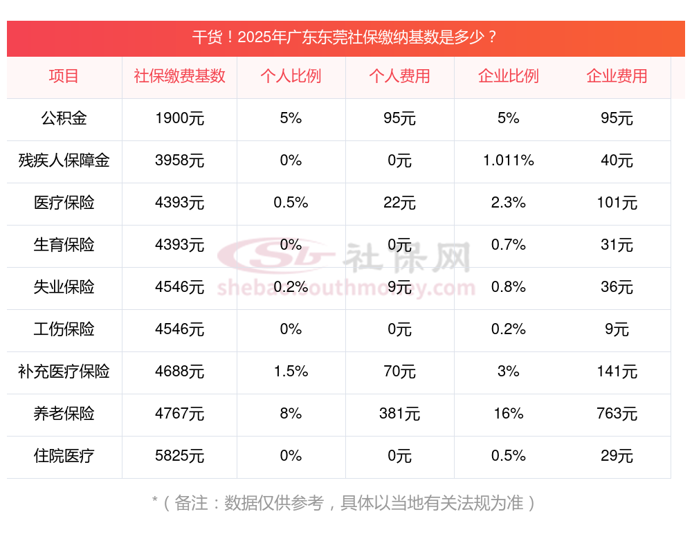 二、2025年广东东莞社保缴费基数是多少?2025年广东东莞社保养老金的计算公式最新消息: