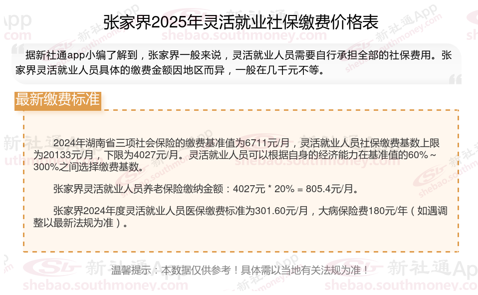 一、2024-2025年张家界灵活就业社保缴费标准表 张家界灵活就业社保多少钱一个月?