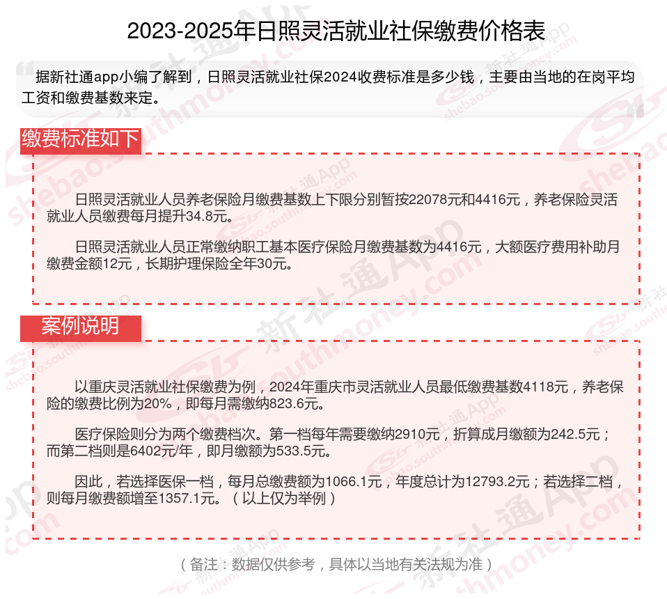 二、日照2025年灵活就业社保缴费基数及比例最新消息