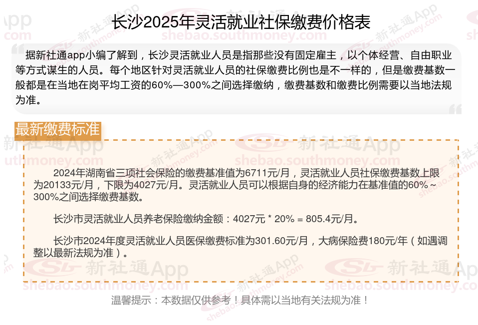 随着经济的发展和社会的进步,灵活就业人员越来越多,但是很多人不知道如何缴纳社保。本文将介绍2025年长沙灵活就业人员社保缴费基数及如何缴纳社保,能领取多少钱,帮助大家更好地了解灵活就业社保,随着新社通APP小编一起了解长沙灵活就业社保缴费最新资讯吧。