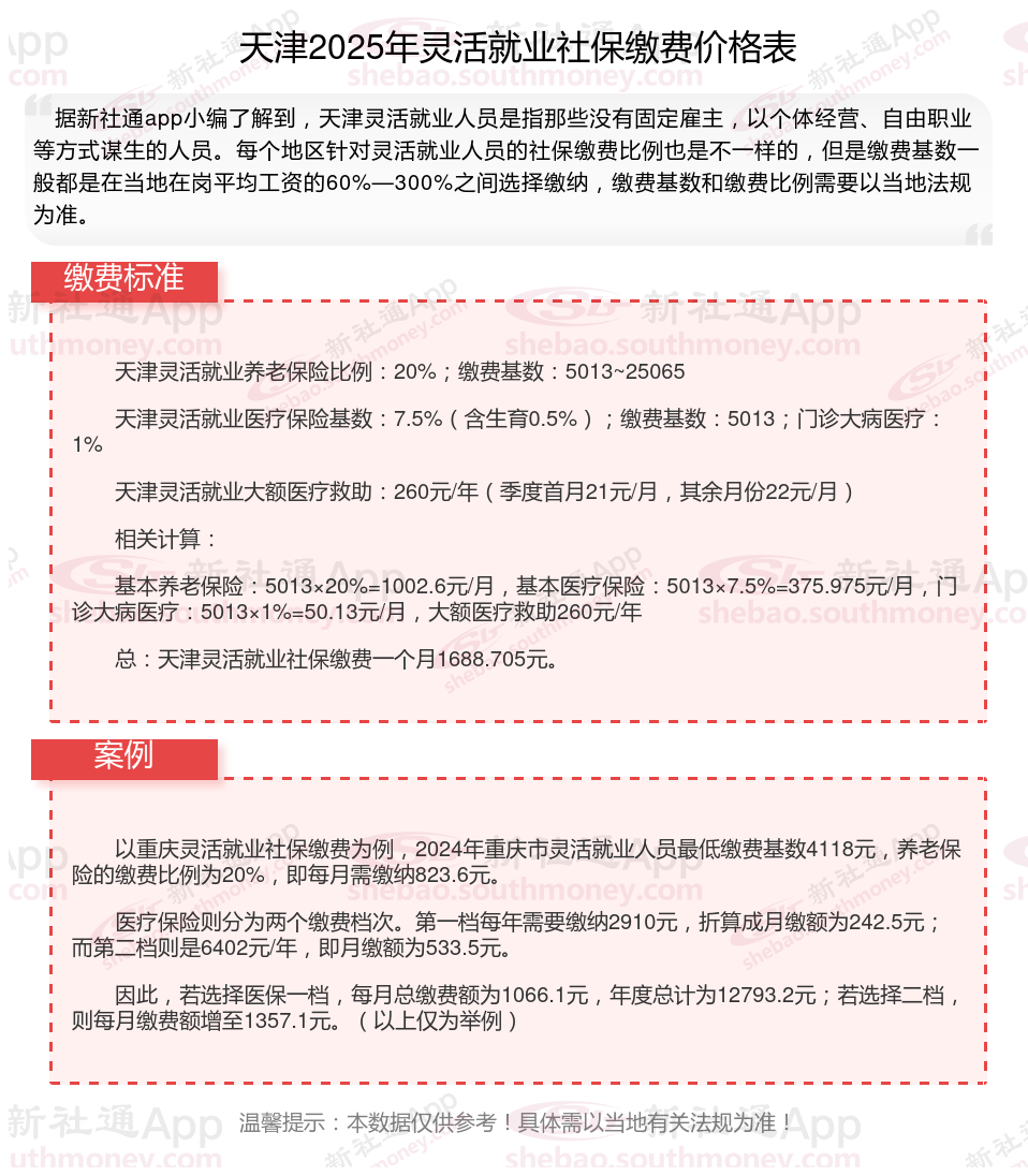 一、2025年天津灵活就业社保缴费标准表,据新社通小编了解到,天津社保公积金缴费基数为:3579.00元。