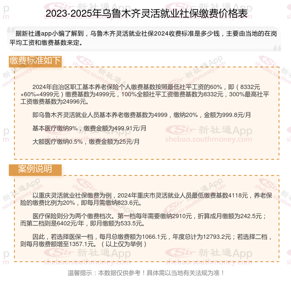 2025年乌鲁木齐灵活就业人员社保需要交多少钱?灵活就业,作为一种非传统的就业方式,近年来蓬勃发展。为保护这部分人群的权益,国制定了相应的社保缴费法规。2024年,灵活就业社保缴费法规继续完善,涵盖了养老保险、医疗保险、失业保险等多个方面,旨在为灵活就业人员提供全面的社会保证。接下来随新社通APP小编一起来看看。