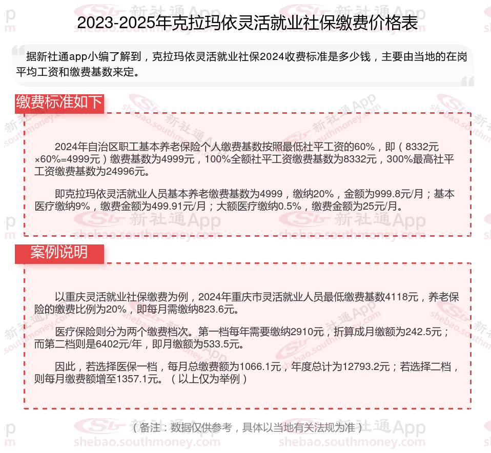 一、克拉玛依灵活就业社保每月交多少钱?