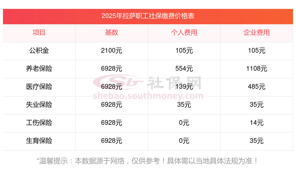 一、拉萨交社保一个月多少钱?2025年拉萨社保缴费比例、明细