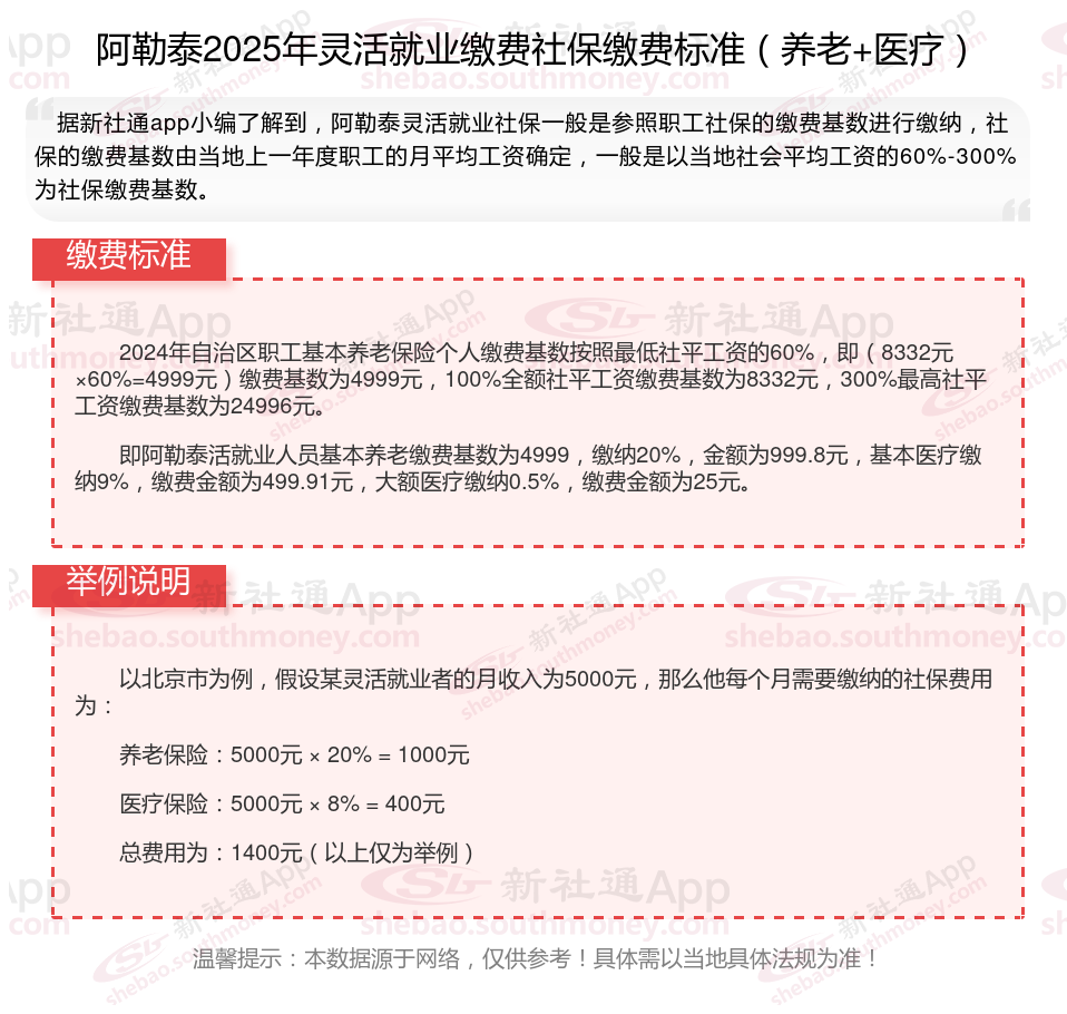 二、阿勒泰2024-2025年灵活就业社保缴费基数、比例最新消息