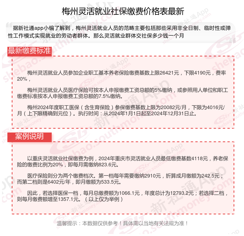 一、2024年梅州灵活就业社保缴费标准表 梅州灵活就业社保多少钱一个月?