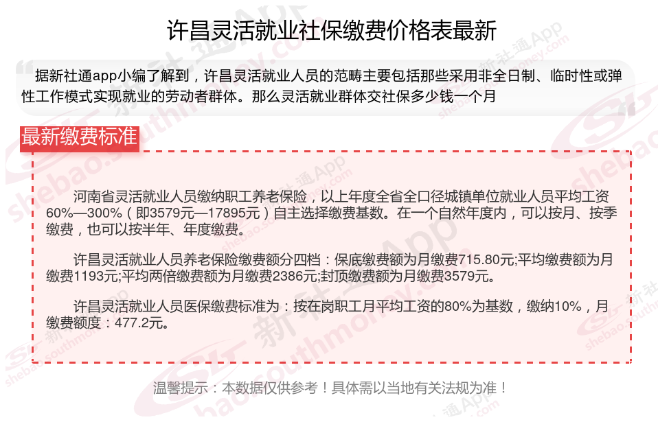 一、2024-2025年许昌灵活就业社保缴费标准表 许昌灵活就业社保多少钱一个月?