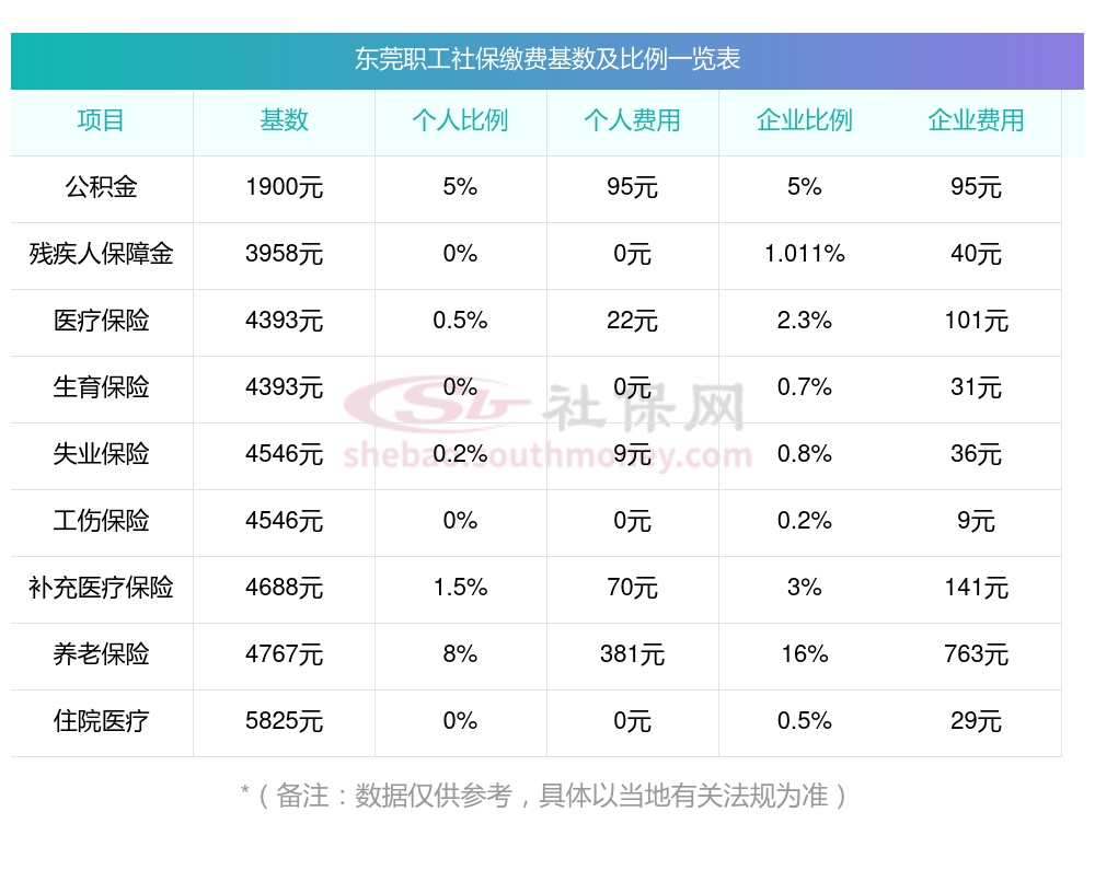 东莞职工社保缴费多少钱?东莞职工社保缴费基数最新参考为:3579.00,具体如下: