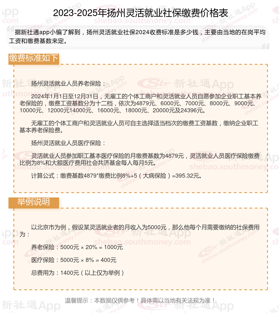 一、2025年扬州灵活就业社保缴费标准表,据新社通小编了解到,扬州社保公积金缴费基数为:3579.00元。