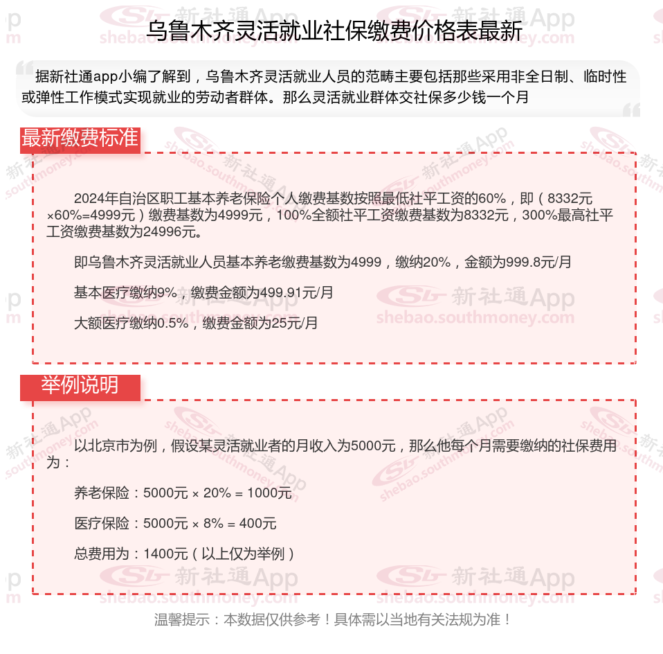 二、乌鲁木齐2024年灵活就业社保缴费基数、比例最新消息