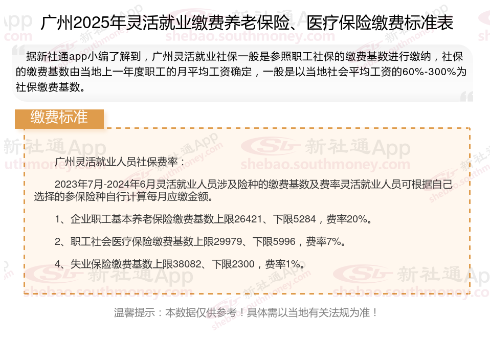 随着经济的发展和社会的进步,灵活就业人员越来越多,但是很多人不知道如何缴纳社保。本文将介绍2025年广州灵活就业人员社保缴费基数及如何缴纳社保,能领取多少钱,帮助大家更好地了解灵活就业社保,随着新社通APP小编一起了解广州灵活就业社保缴费最新资讯吧。