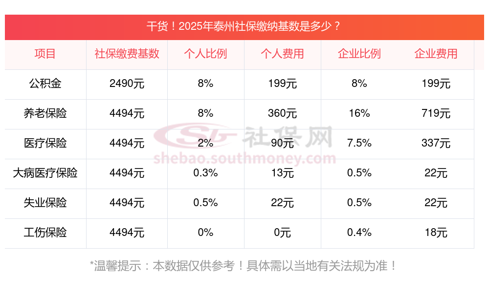 据新社通app显示,泰州社保缴费基数2025年标准,(社保最低一个月要交多少钱)泰州社保费用如下: