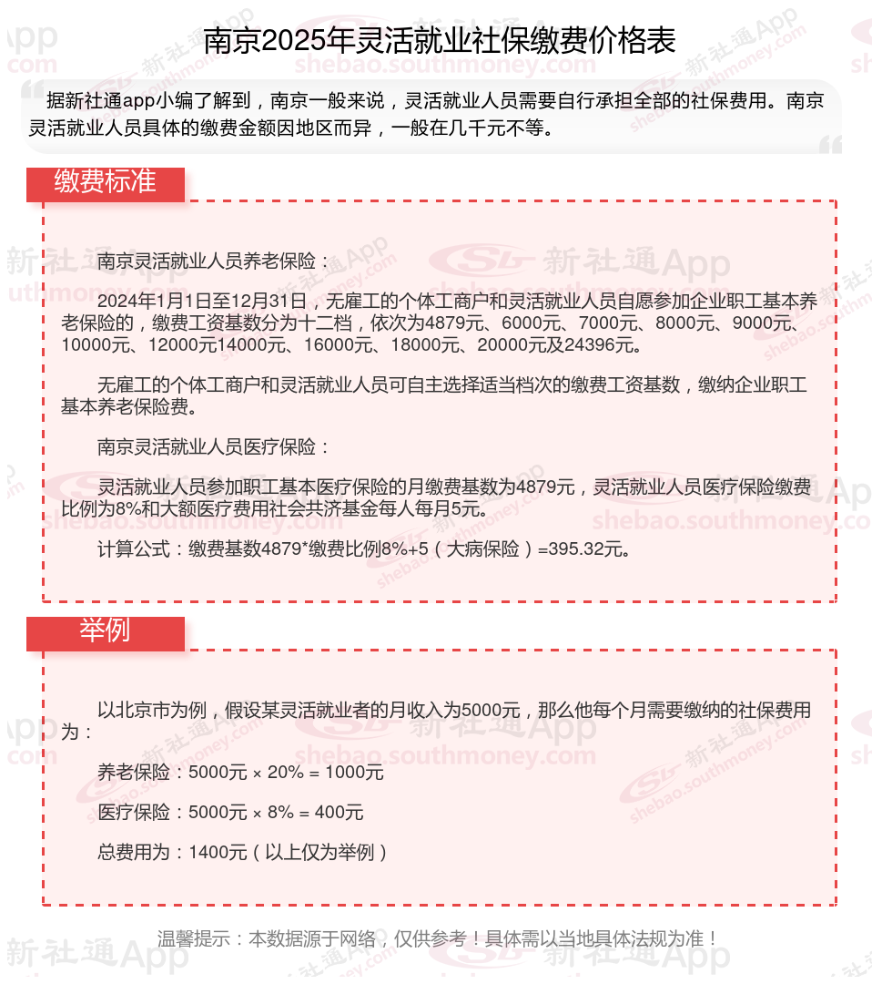 一、2024年南京灵活就业社保缴费标准表 南京灵活就业社保多少钱一个月?
