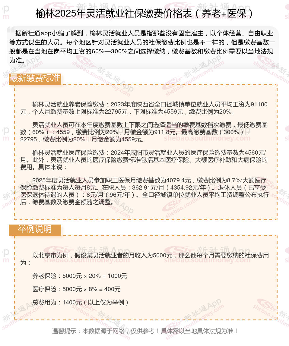 二、榆林2024年灵活就业社保缴费基数、比例最新消息