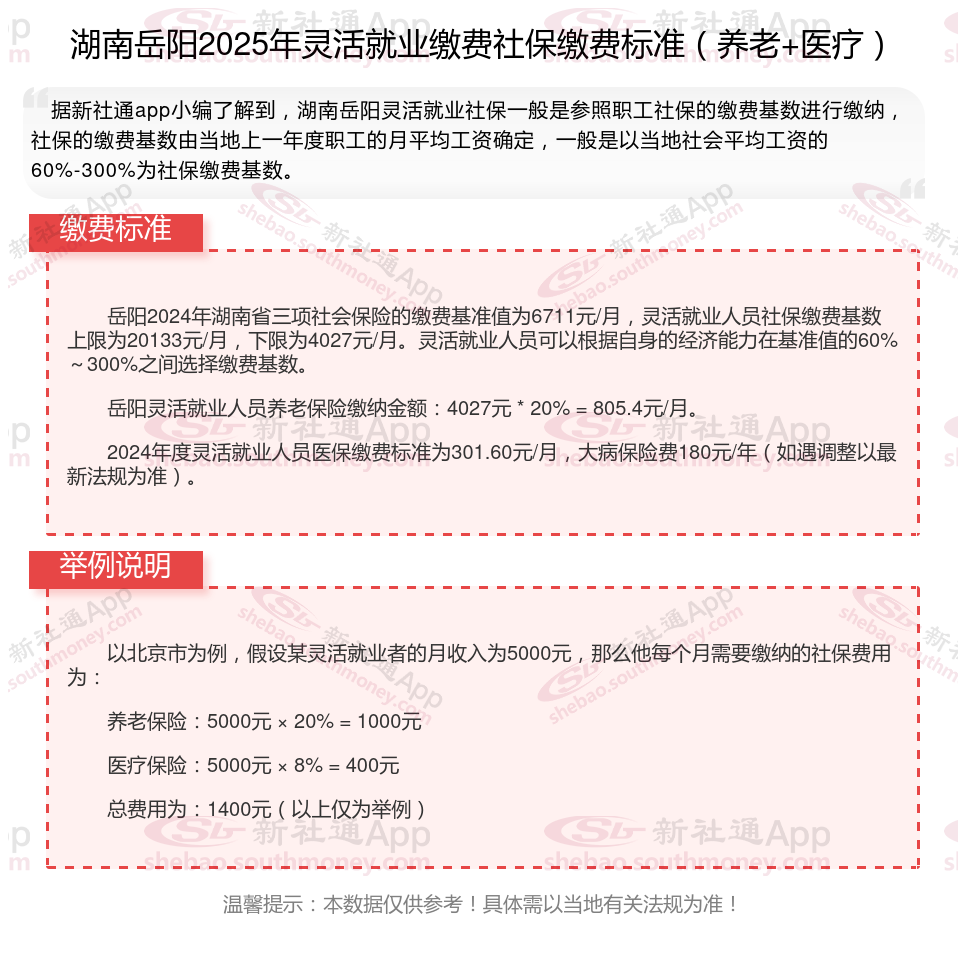 2025年湖南岳阳灵活就业社保缴费标准多少钱一个月?