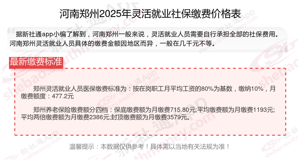 二、2025年河南郑州灵活就业社保缴费标准表 河南郑州灵活就业社保多少钱一个月?