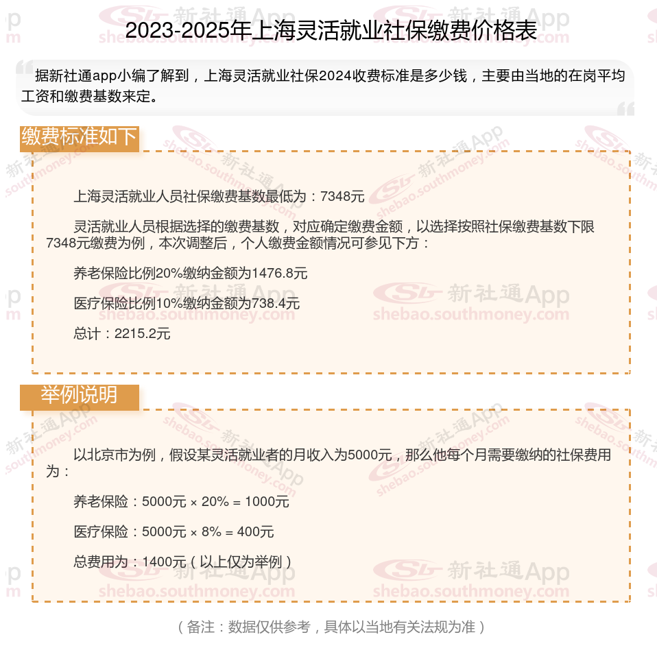 一、2025年上海灵活就业社保缴费标准表 上海灵活就业社保多少钱一个月?