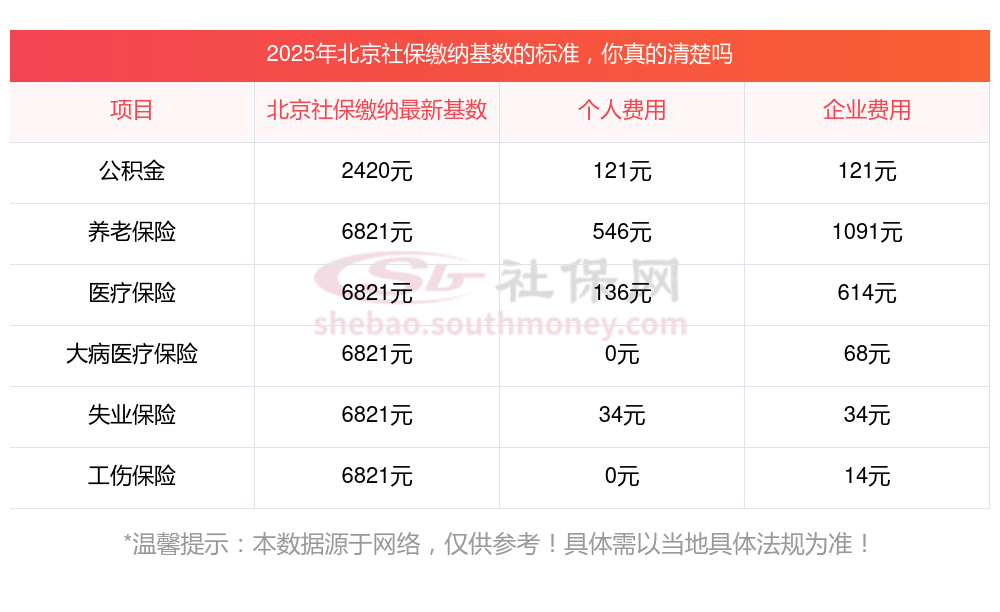 根据有关法规,北京企业职工基本社保缴费基数暂按不低于6821.00元;