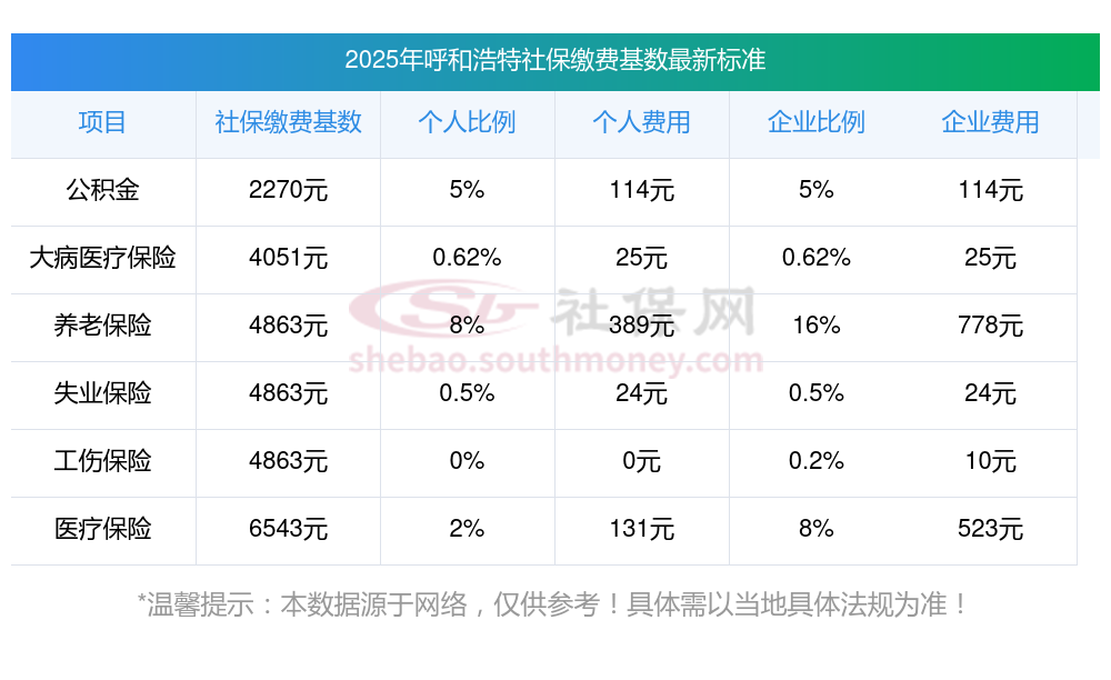 二、2025年呼和浩特职工社保缴费多少钱一个月,2025年职工和公司社保各交多少钱?