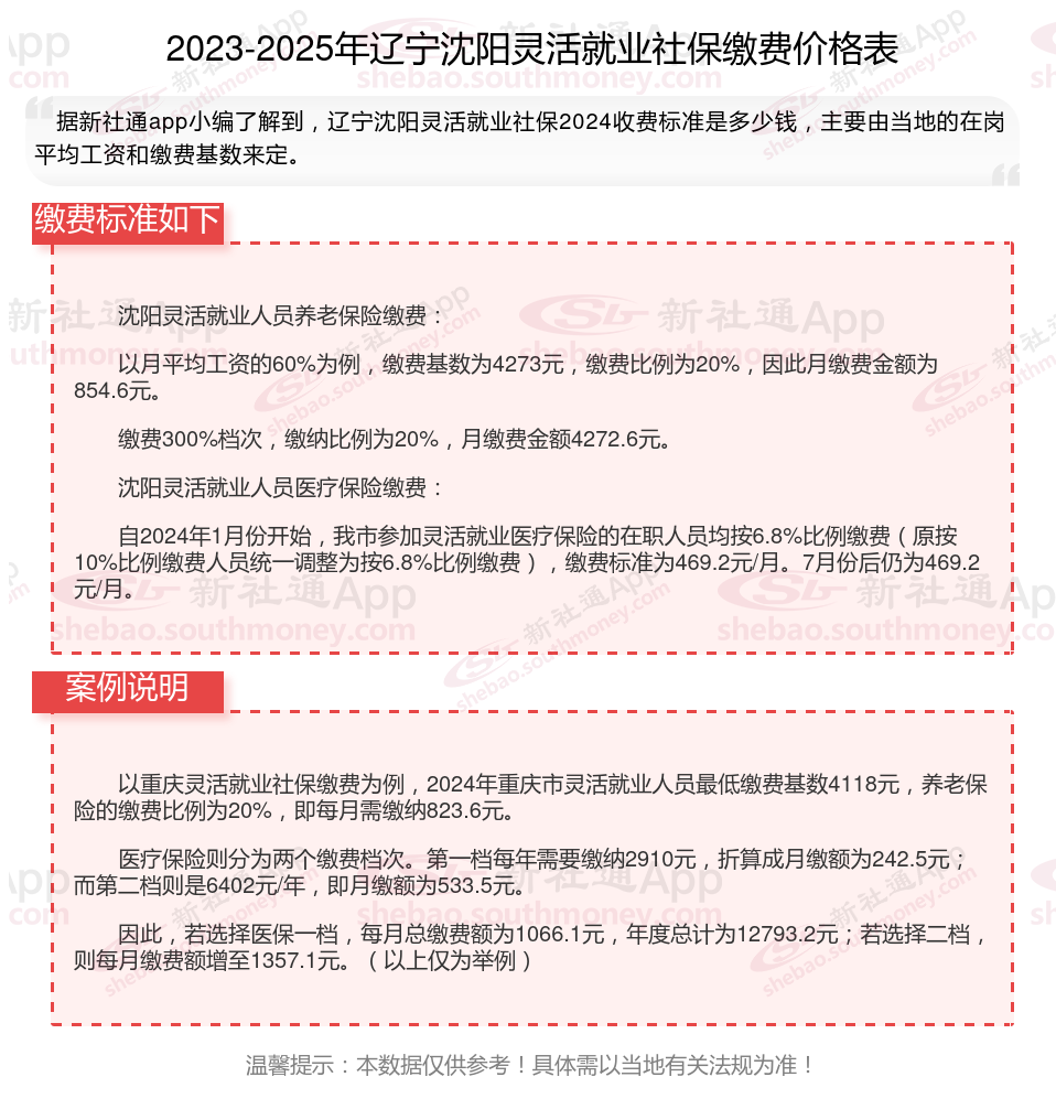 随着经济社会的不断发展,灵活就业群体不断地日益壮大,其社保缴费问题也愈发受到关注。那么2025年辽宁沈阳灵活就业人员社保交多少钱,你了解2025年辽宁沈阳灵活就业人员社保缴费基数及比例吗,接下来随新社通APP小编一起来看看。