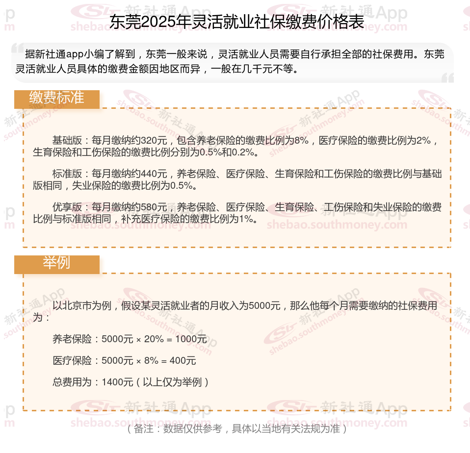 随着经济社会的不断发展,灵活就业群体日益壮大,其社保缴费问题也愈发受到关注。接下来随社保君了解一下2025年东莞灵活就业人员社保交多少钱的详细内容。