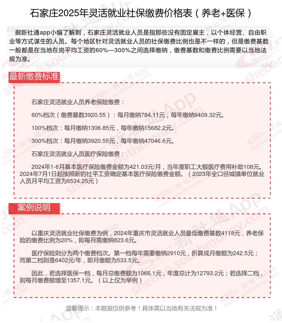 灵活就业,作为一种非传统的就业方式,近年来蓬勃发展。那么2025年石家庄灵活就业人员社保需要交多少钱?下面随新社通小编一起来看看。