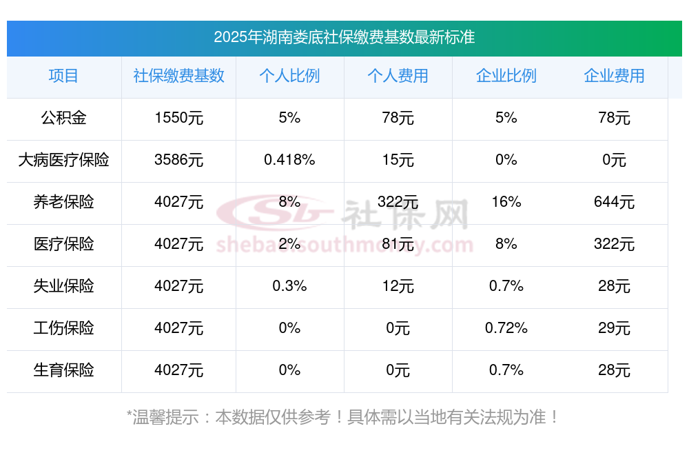 一、据新社通app获悉:湖南娄底企业职工社保缴费基数为:3579.00元,湖南娄底社保缴费标准基数及比例2025年个人社保缴费标准表(最低标准)?: