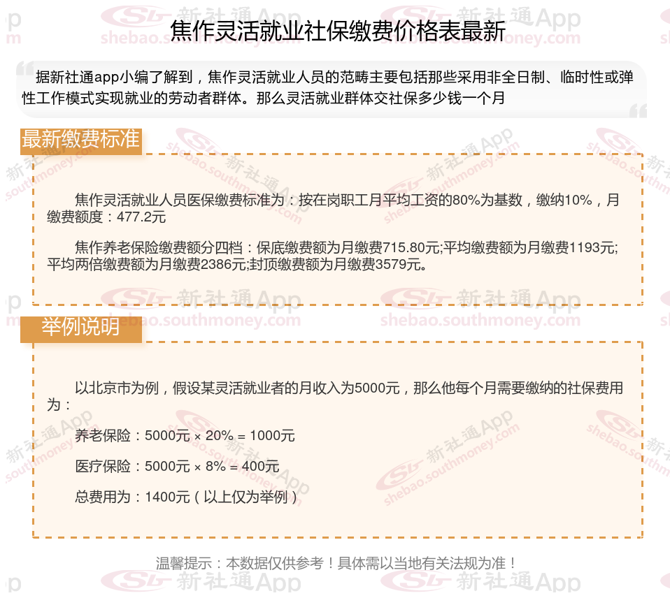 一、2024-2025年焦作灵活就业社保缴费标准表 焦作灵活就业社保多少钱一个月?