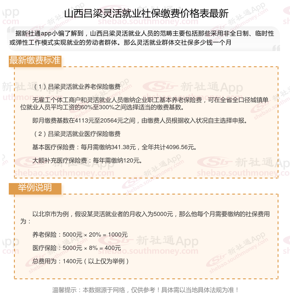 一、2024年山西吕梁灵活就业社保缴费标准表 山西吕梁灵活就业社保多少钱一个月?