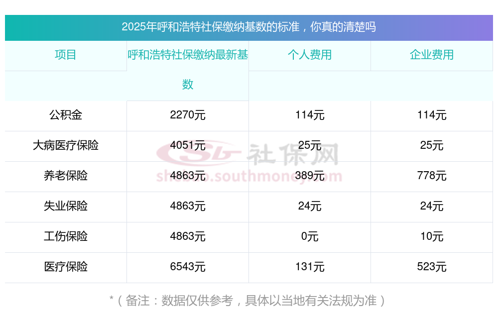 一、2025年呼和浩特社保缴费多少钱呢?2025年呼和浩特社保缴纳基数标准最新