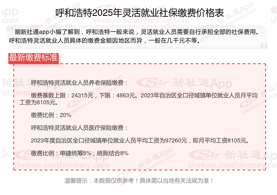一、2025年呼和浩特灵活就业社保缴费标准表 2025年呼和浩特灵活就业社保多少钱一个月?