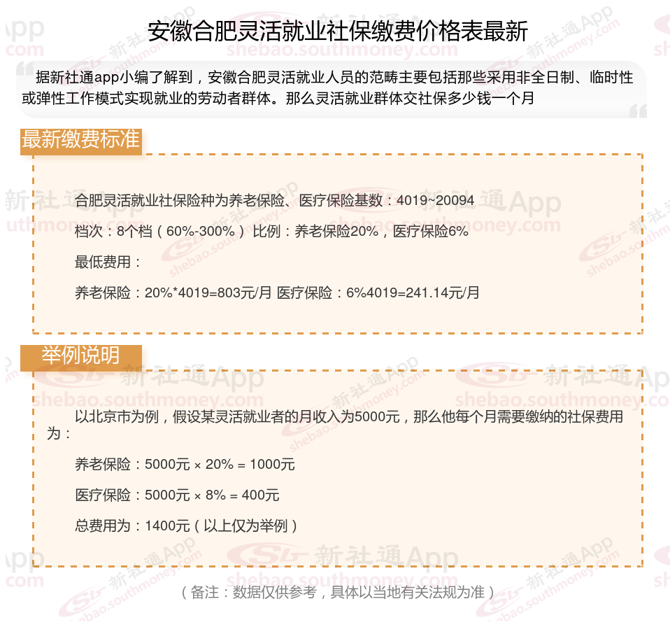 2025年安徽合肥灵活就业人员社保交多少钱,你了解2025年安徽合肥灵活就业人员社保缴费基数及比例吗,据新社通小编了解到,灵活就业社保缴费标准每年都会有所调整,主要体现在缴费基数和缴费比例上。接下来随新社通APP小编一起来看看。