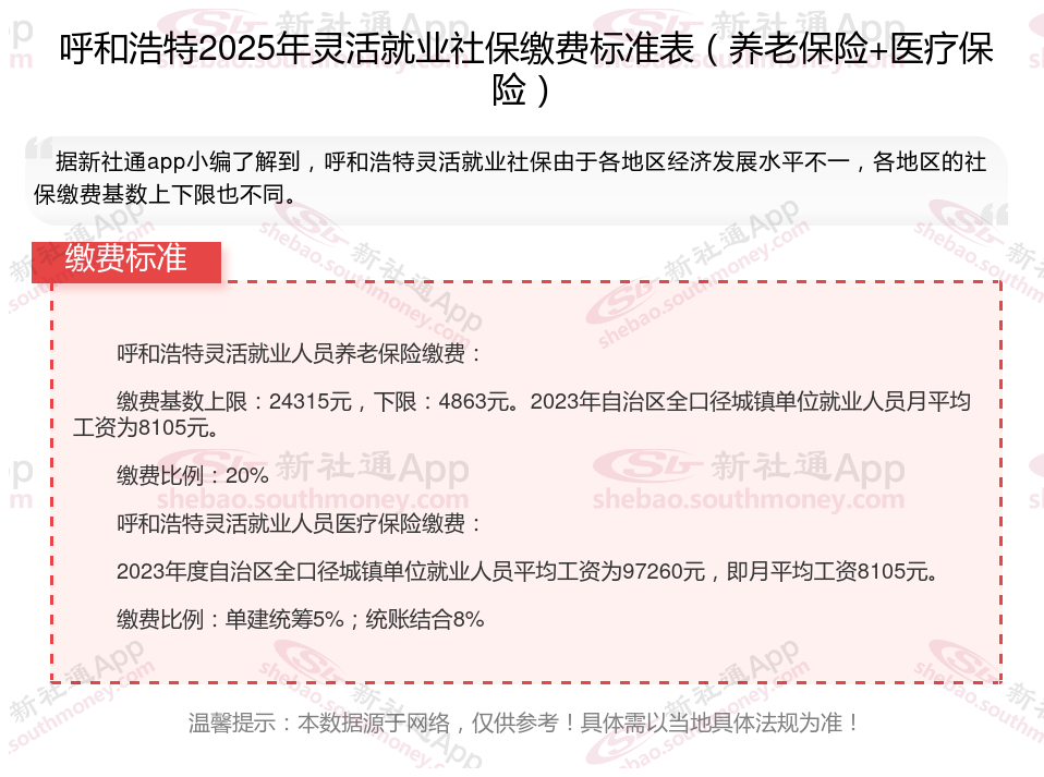 二、呼和浩特2025年灵活就业社保缴费基数及比例最新消息