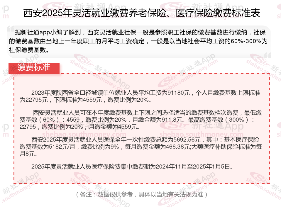 二、2025年西安灵活就业社保缴费标准表 西安灵活就业社保多少钱一个月?