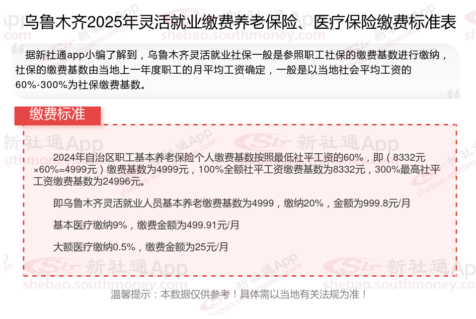 二、乌鲁木齐2024年灵活就业社保缴费基数、比例最新消息